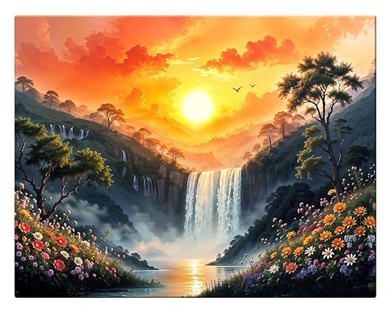 Utlimate Vastu Painting Sunrise, Waterfalls & Nature Scenery All in One Painting Infuse your space with positive energy, The Rising Sun, Waterfall and Nature scenery...